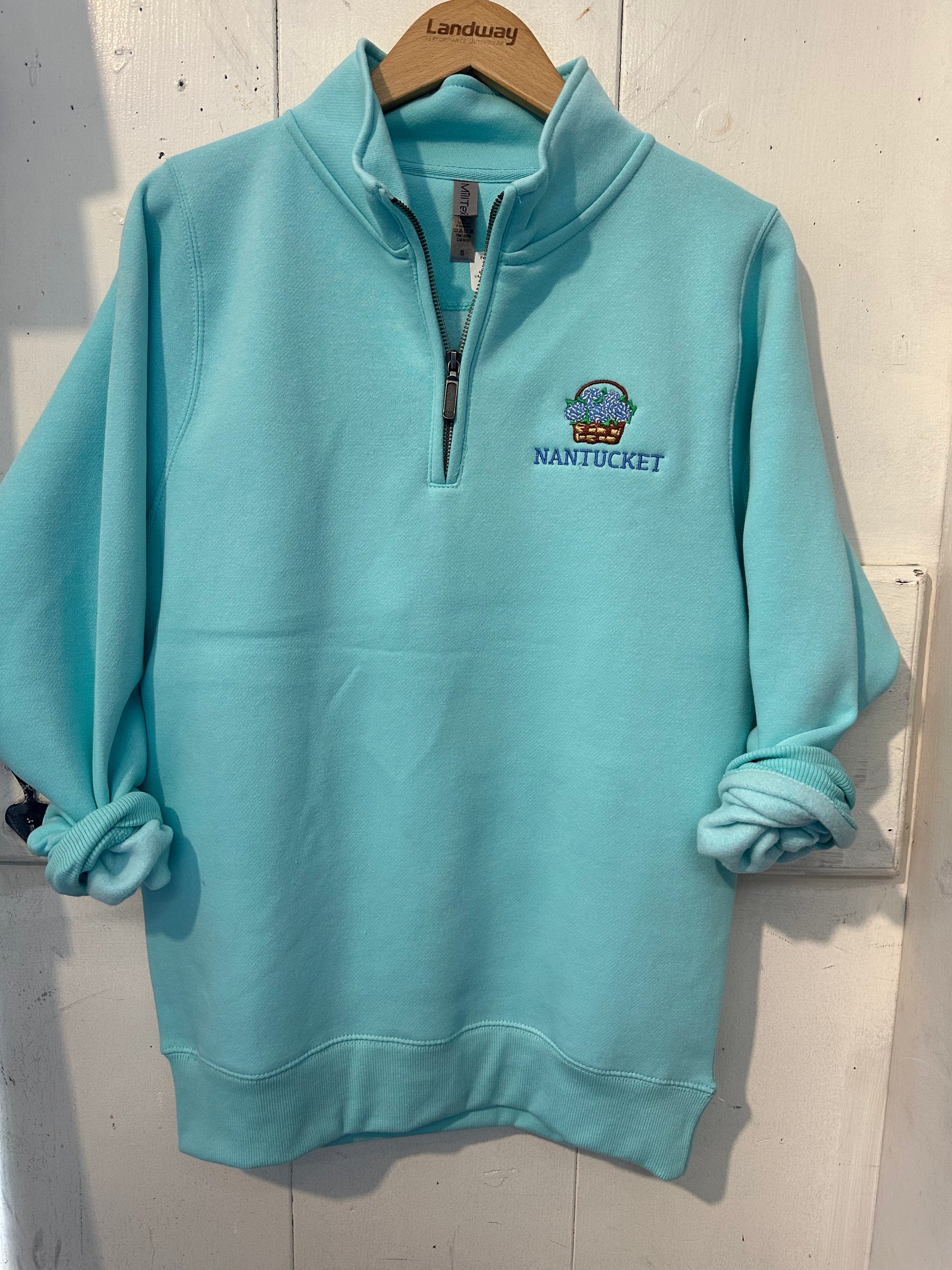 1/4 ZIP HYDRANGEA BASKET WITH NANTUCKET EMBROIDERED